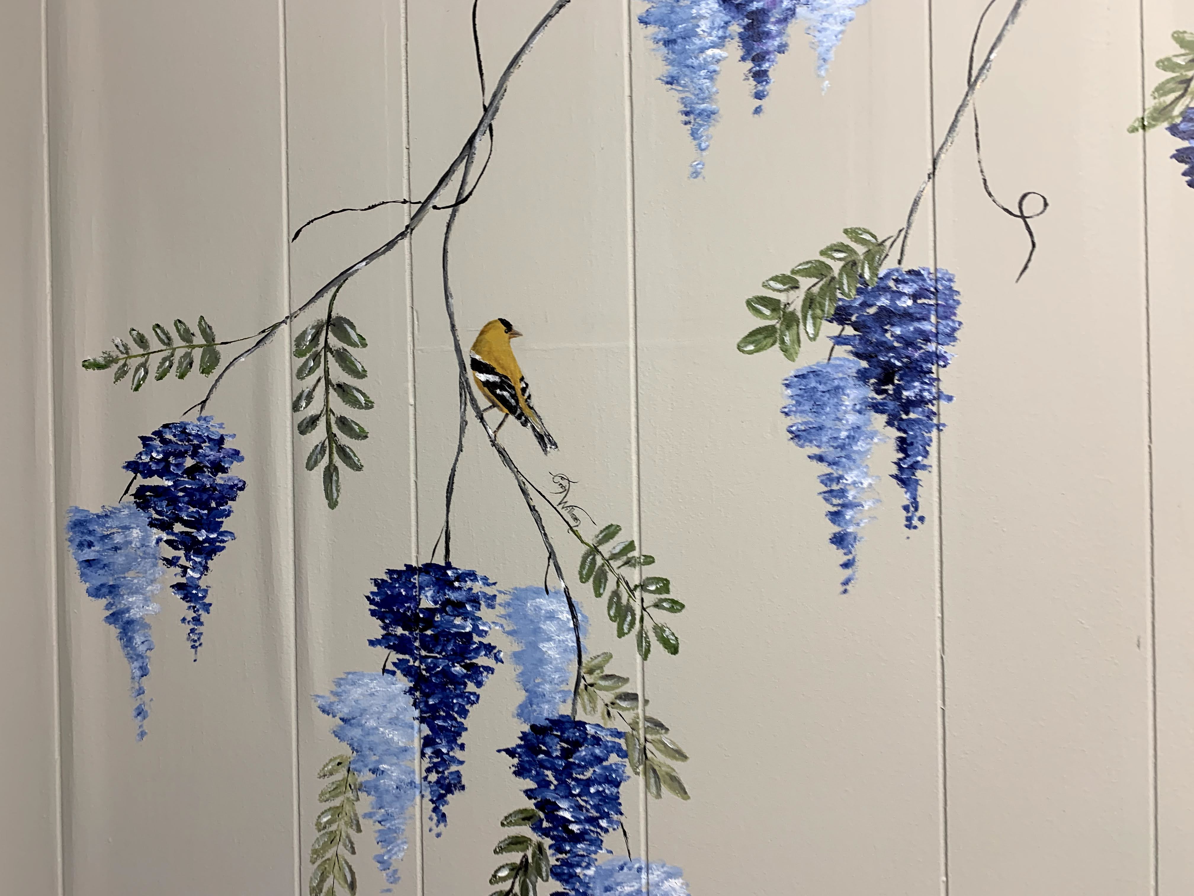 wisteria and goldfinches